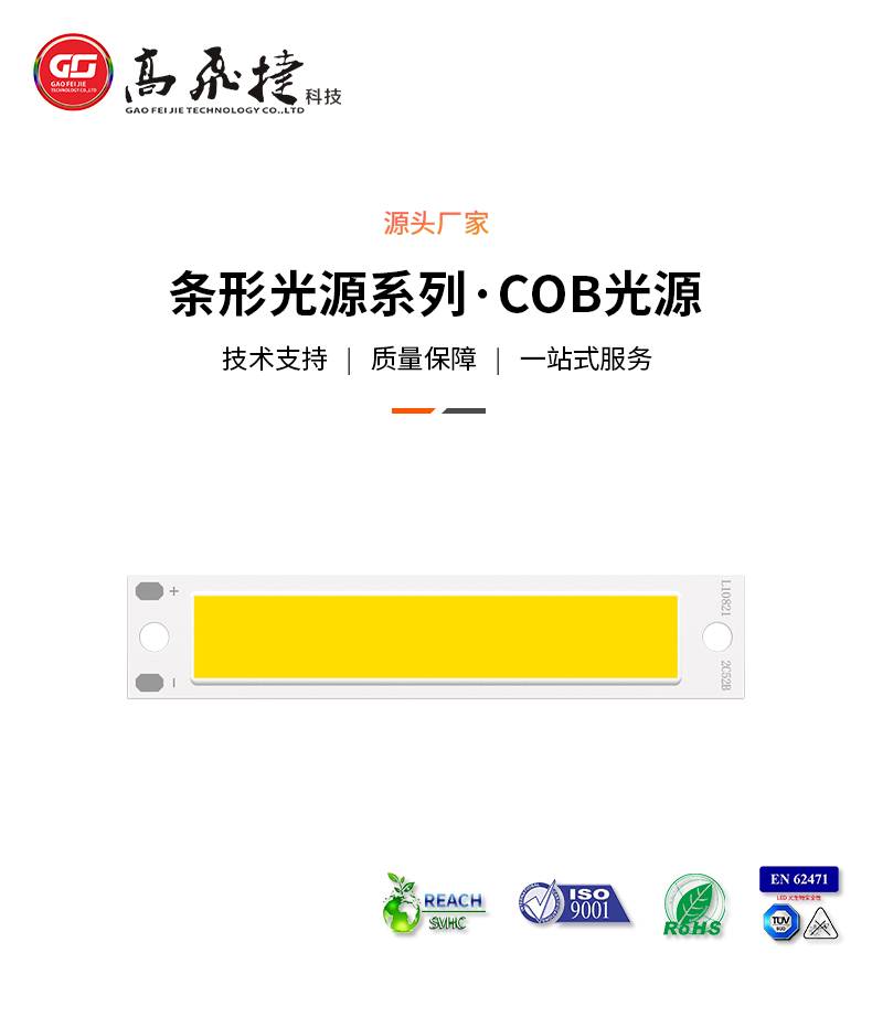 熱門標簽: 深圳高飛捷科技高功率高光效倒裝COB光源107.77*21.44mm