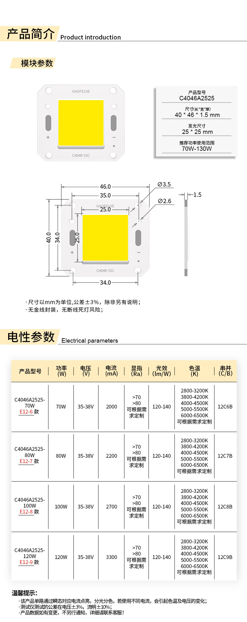 COB光源-戶外照明系列C4046A2525-12C-70~120W